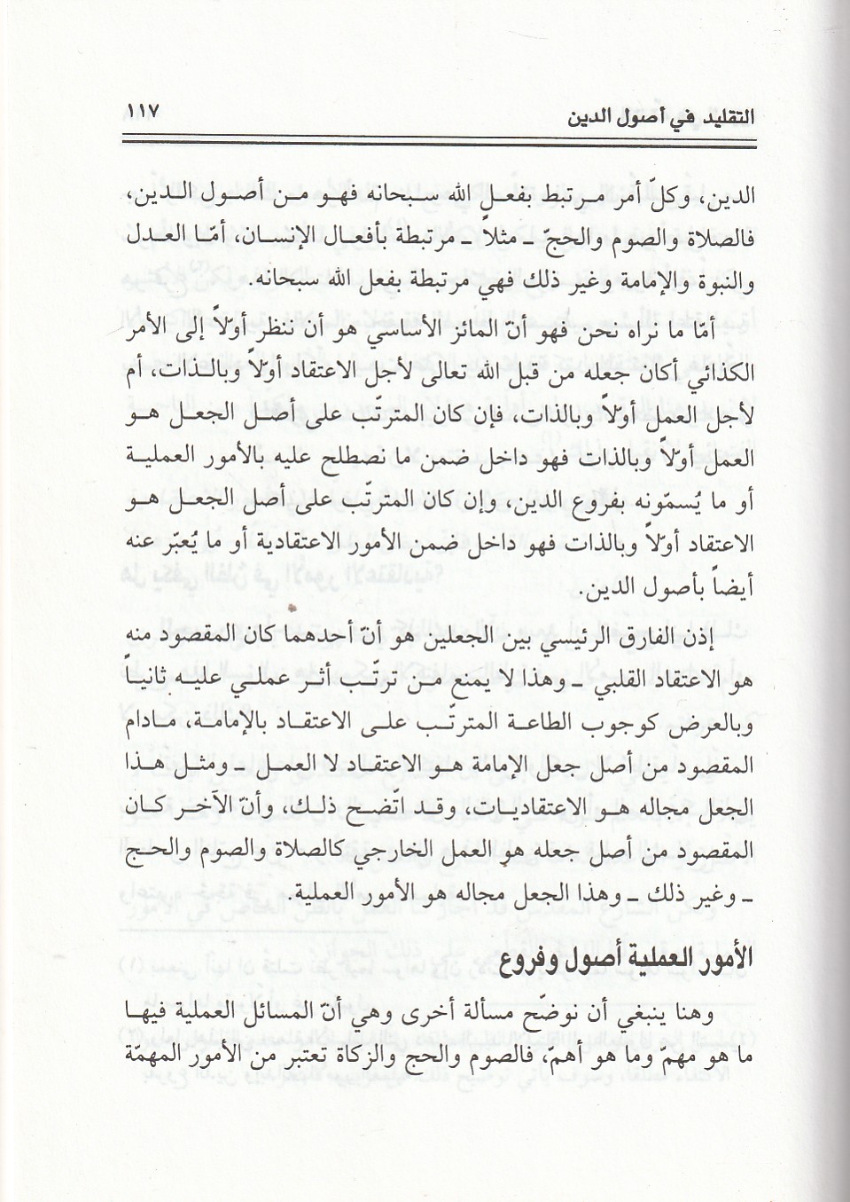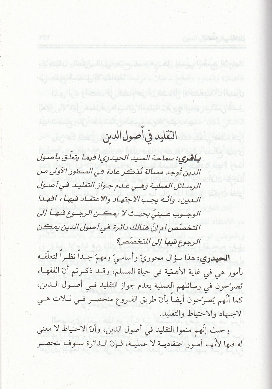 یشتمل هذا الكتاب علي تمهيد وفصول خمسة، كالتالي: الأول: التفقّه في الدين ، الثاني: الحاجة للوسيط في فهم النّص ، الثالث: التقليد في اصول الدين ، الرابع: معطيات ظاهرة التخصّص ، الخامس: لغة النّص ولغة المتخصّص