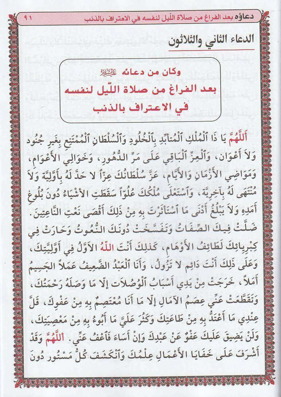 المحتوى: تتكون من مجموعة أدعية تظهر عمق معرفة الإمام بالله وتفاني الإنسان في عبادته.