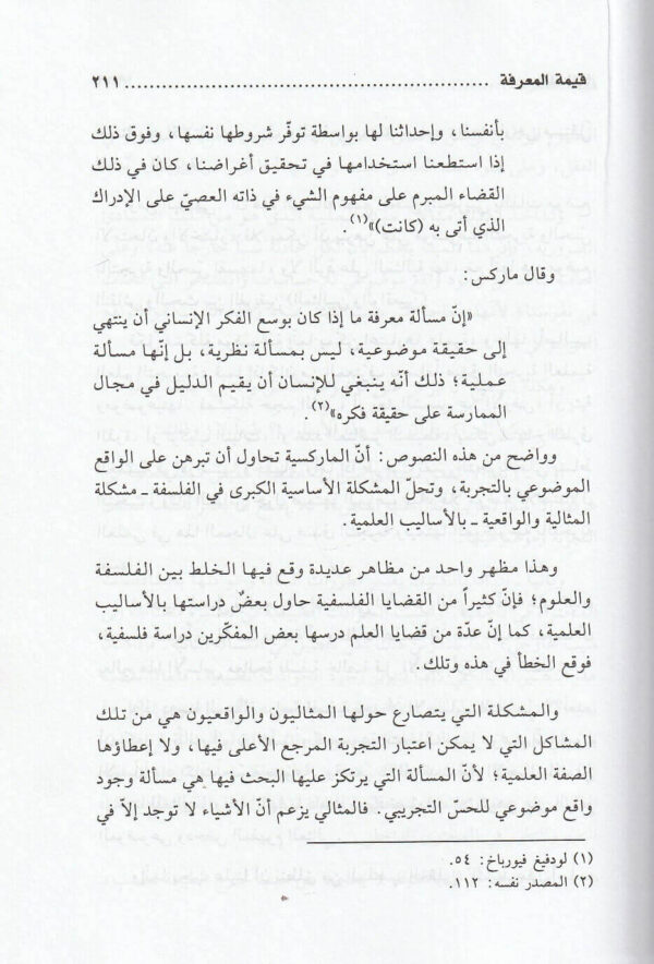 يتناول الكتاب دراسة موضوعية لمعترك الصراع الفكري القائم بين المدارس الفلسفيّة الحديثة وخاصة الفلسفة الإسلامية والمادية الماركسية. ففي المقدمة من الكتاب يتحدث المؤلف عن المذاهب التي هي سائدة في مسيرة الفكر الأنساني کالمذهب الديمقراطي الرأسمالي، والمذاهب الأشتراكية والماركسية والشيوعية، والمذهب الأسلامي. وهو يقوم بعرض الفلسفة الإسلامية عبر نقده للأفكار الرأسمالية والماركسية.