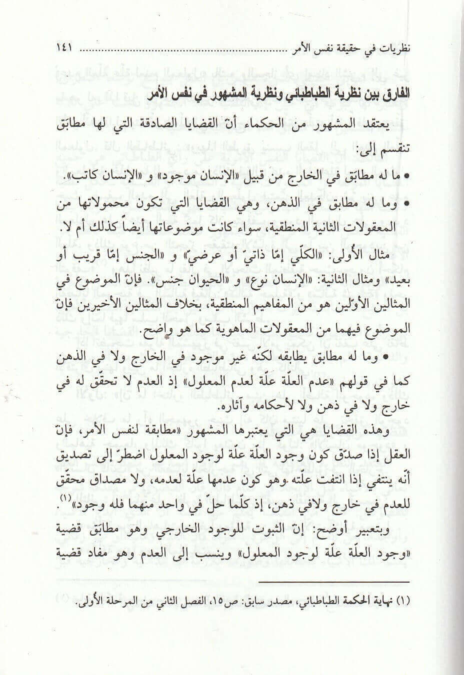 أبحاث الكتاب : 1- التفسير الماهوي للمعرفة – بحث في الوجود الذهني 2-نفس الأمر وملاك الصدق في القضايا 3- المدارس الخمس في العصر الإسلامي 4-منهج الطباطبائي في تفسير القرآن 5- خصائص عامة في فكر الشهيد الصدر